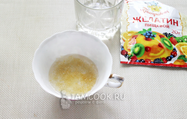 Теперь наступает очередь основного ингредиента - добавьте разбухший желатин.
