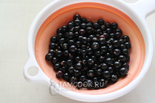 Смородину переберите и промойте, откиньте на дуршлаг.