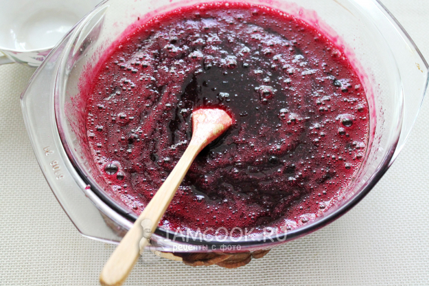 Остудите получившееся варенье до теплого состояния и протрите через сито или сразу пробейте блендером.