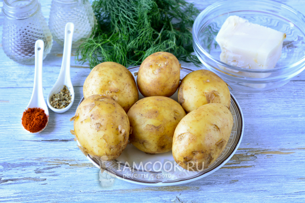 Подготовьте все продукты для запекания молодой картошки с салом в духовке.