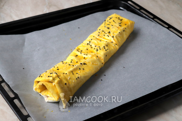 Поверхность рулета посыпьте семенами кунжута, мака или льна.