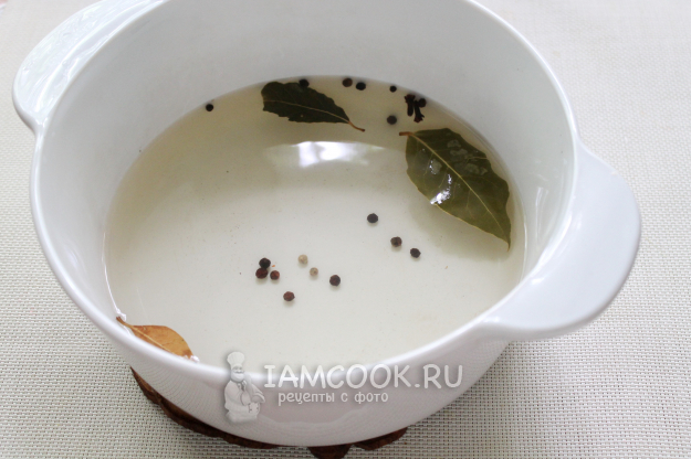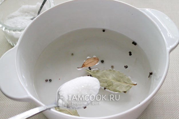 Готовлю маринад, добавляя в чистую воду пряности, соль и сахар.