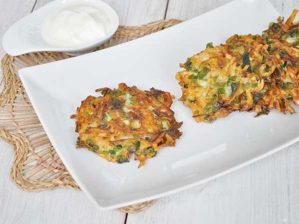 Подавайте кабачковые оладьи с сыром ПП (без муки) теплыми или остуженными.
