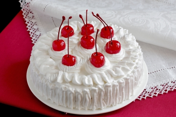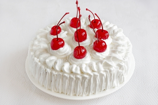 Украсить сливками, как подсказывает фантазия, выложить коктейльную вишню.
