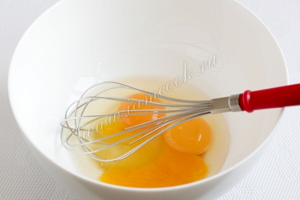 В отдельную емкость вылить глюкозу или жидкий мед, добавить отмеренное количество яиц и желтка. Слегка разбить венчиком, чтобы мед смешался с яйцами.