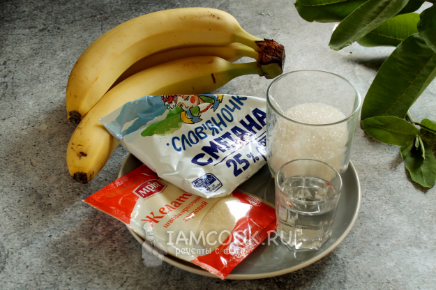 Возьмите продукты для приготовления панна-котты с бананом. Выбирайте спелые, сладкие бананы и сметану с высоким процентом жирности.