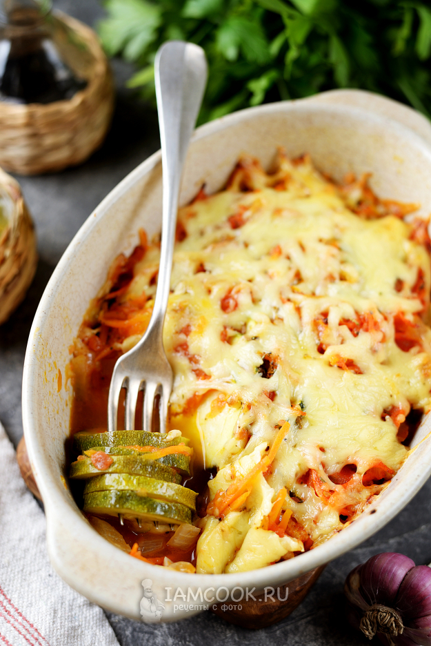 Запеченные в духовке кабачки под шубой готовы. Подавайте как горячую закуску или самостоятельное блюдо с любимым гарниром.