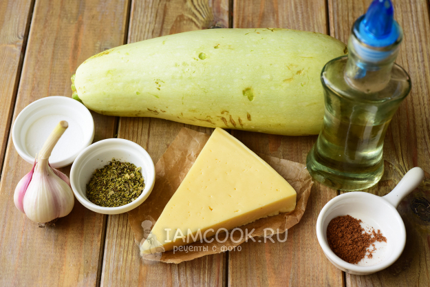 Возьмём все ингредиенты для приготовления пасты из кабачков с сыром и чесноком. Снимем с кабачка кожицу, почистим чеснок.