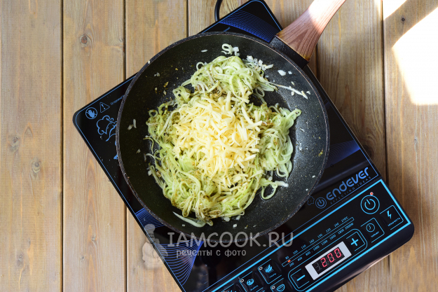 Выложим сыр и еще будем обжаривать около 3-х минут, постоянно помешивая.