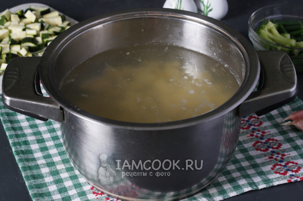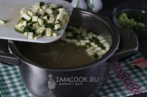 Затем добавить кабачки и варить ещё 10 минут.