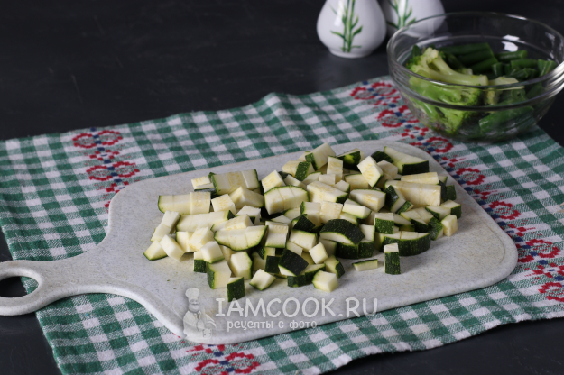 Кубиками нарезать кабачок.