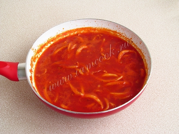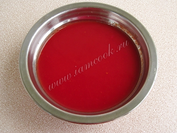 Томаты вместе с заливкой протереть через сито для удаления кожицы и семян.