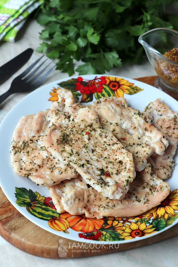 Вот и всё, ПП отбивные из куриного филе в духовке готовы. На стол подавайте их в тёплом виде.