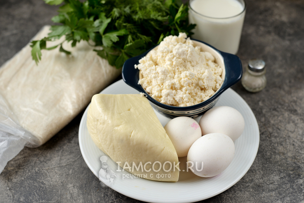 Для приготовления ленивых хачапури из лаваша в духовке вам понадобятся все продукты, что на фото. Творог используйте рассыпчатый, мелкозернистый и с низким процентом жирности.