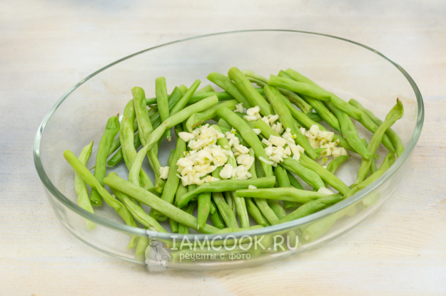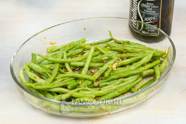 Для запекания стручковой фасоли в духовке подготовьте продукты по списку.