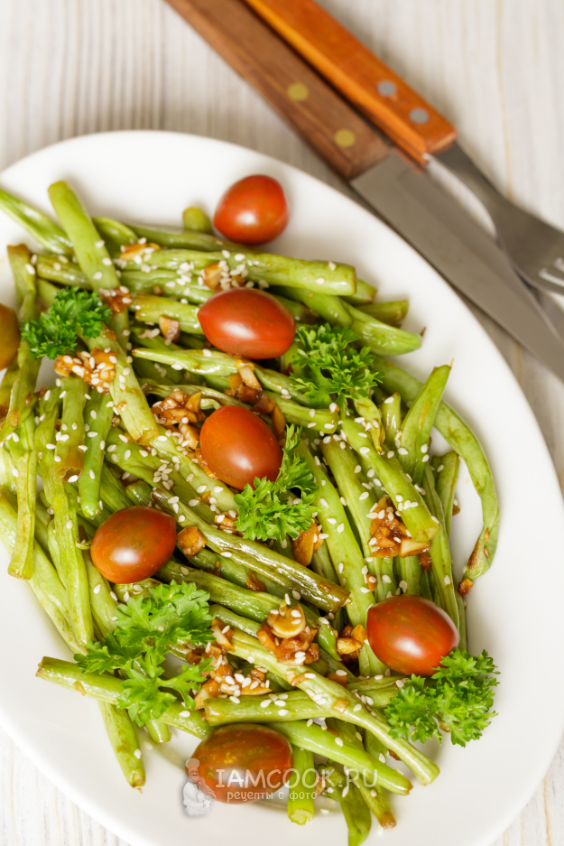 Запеченная стручковая фасоль готова.