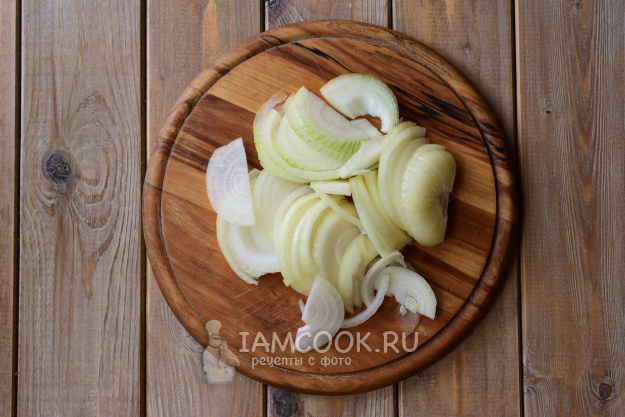 Нашинкуем лук полукольцами.