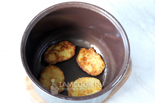 В чашу мультиварки налейте немного растительного масла и включите режим "Жарка", нажмите кнопку "Старт". После того как масло хорошо прогреется, выложите столовой ложкой небольшие порции теста, формируя круглые или овальные заготовки.