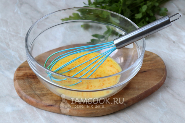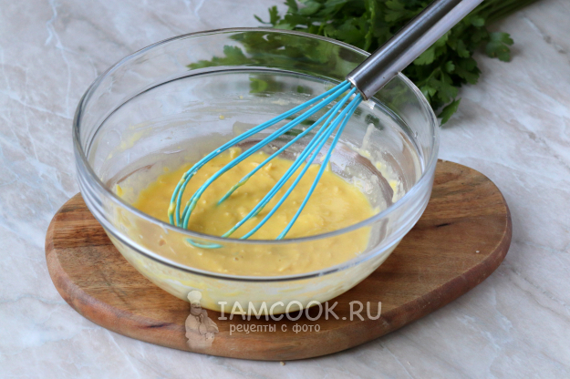 Первым делом нужно сделать кляр. В глубокую миску налейте молоко, добавьте щепотку соли и куриное яйцо. Венчиком перемешайте массу до однородного состояния. С количеством соли будьте аккуратней, учитывая, что в кляр будем добавлять сыр, который сам по себе солоноватый.
