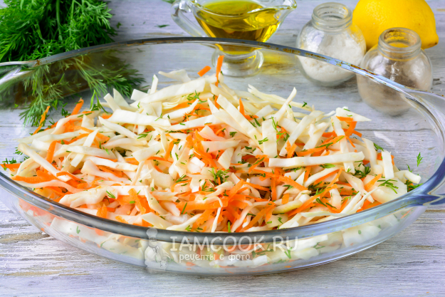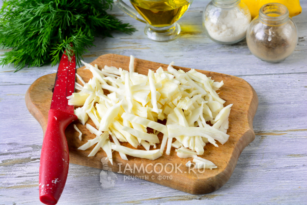 Нарежьте капусту средними полосками.