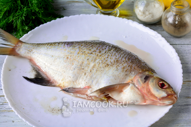 Почистите леща от чешуи, удалите жабры и внутренности. Рыбу хорошо промойте. Затем посолите и поперчите по вкусу.