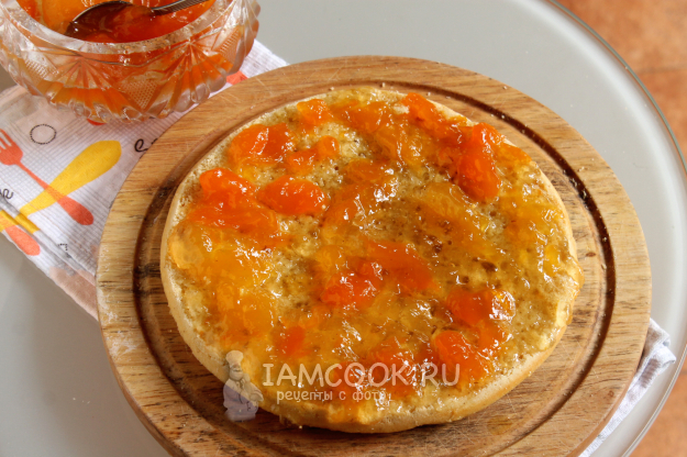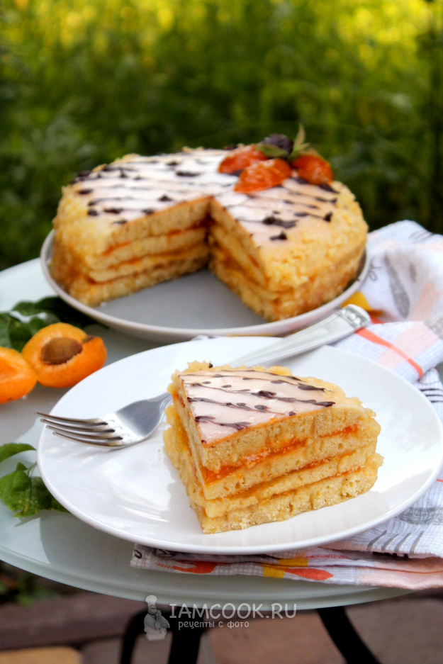 Подавайте сочный торт с абрикосовым вареньем с чаем или кофе.