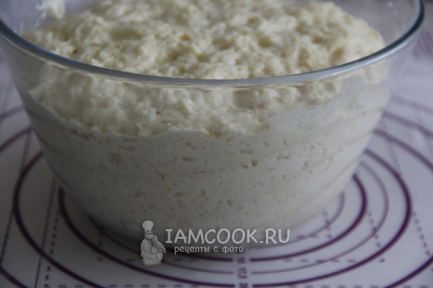 Оставить тесто в миске, накрыв полотенцем, на 1 час. Вот так поднимется тесто.