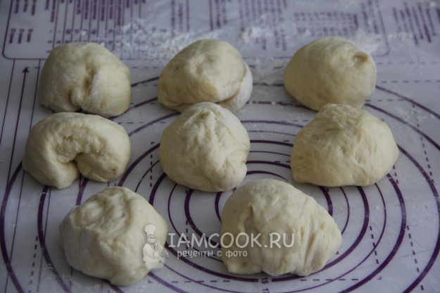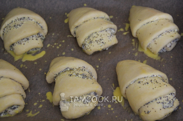 Оставить булочки на 30 минут для расстойки. Смазать булочки взбитым желтком.