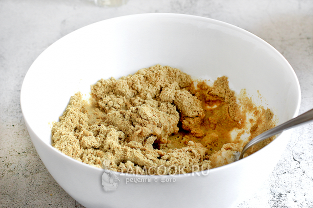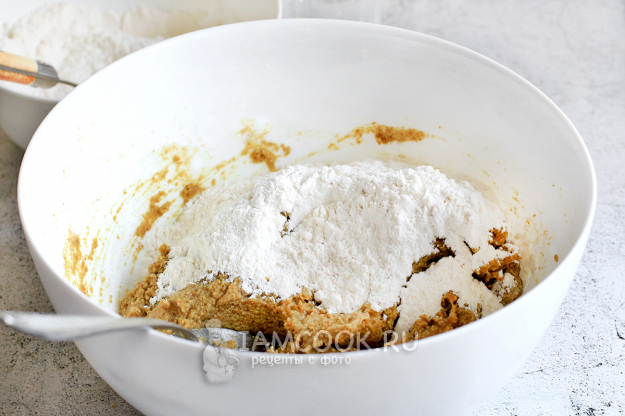 Смешайте пшеничную муку, соль, разрыхлитель, корицу и ванилин (ванильный сахар).