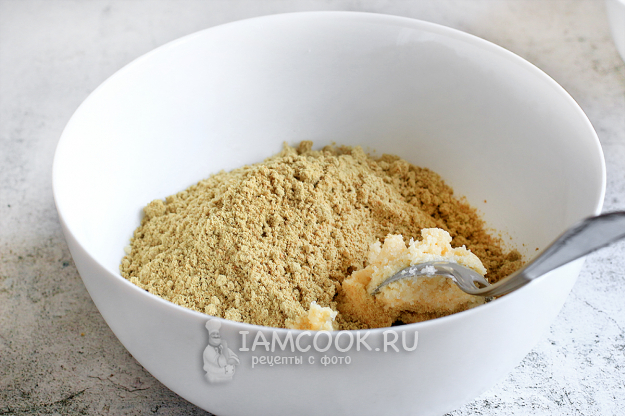 Добавьте муку из тыквенных семечек и еще немного разотрите.
