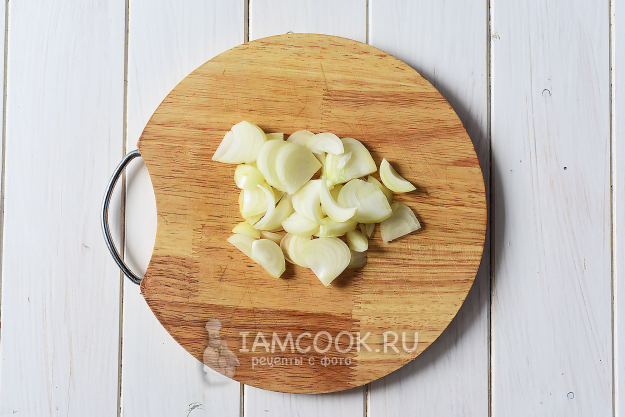 Произвольно шинкуем лук.