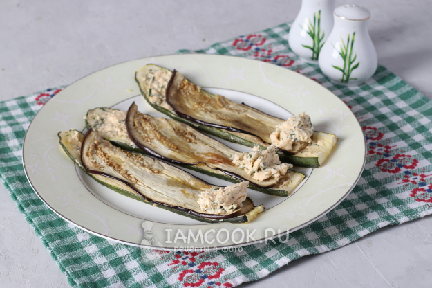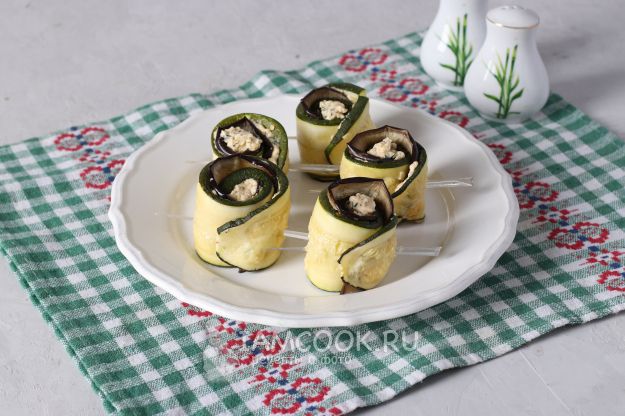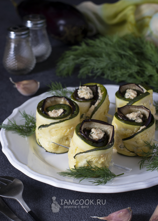Готовые рулеты из кабачков с баклажанами и сыром можно сразу подавать к столу.