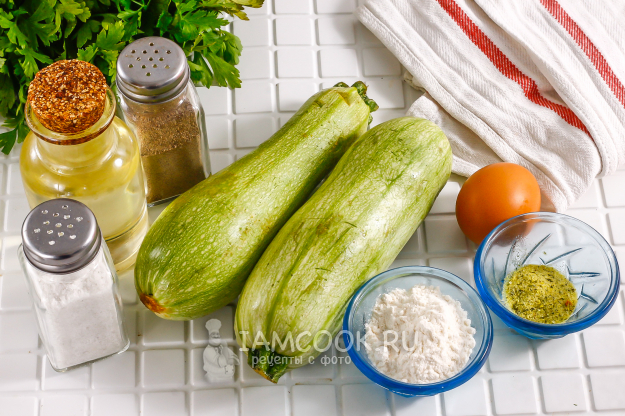 Подготовьте необходимые ингредиенты для запекания наггетсов из кабачков брусочками в духовке.