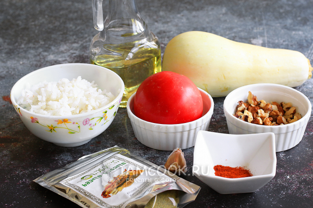 Чтобы приготовить рис с кабачками и помидорами в духовке, возьмите необходимые продукты, перечисленные в списке ингредиентов.
