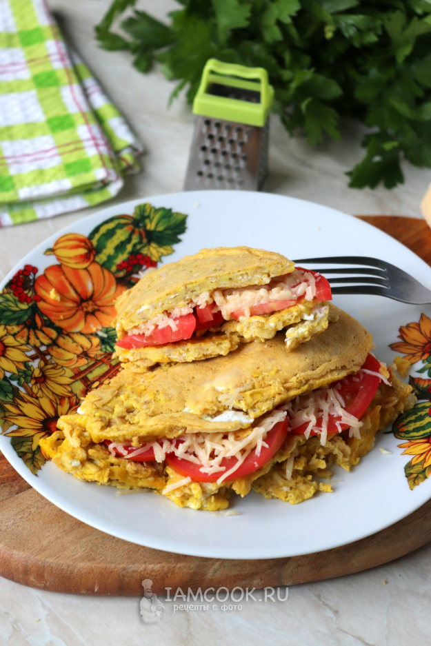 Вот и всё, вкуснейший овсяноблин с помидорами и сыром готов. На стол подавайте его в тёплом виде. Такое блюдо отлично подходит для завтрака.