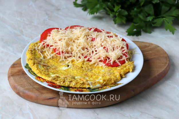 Сверху на помидоры выложите сырную стружку. После чего начинку накройте свободной половиной блина.