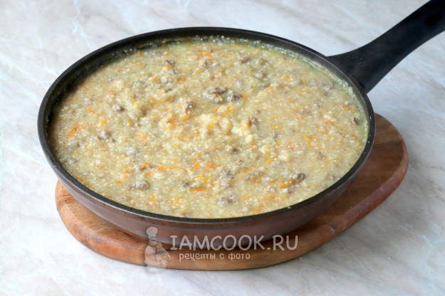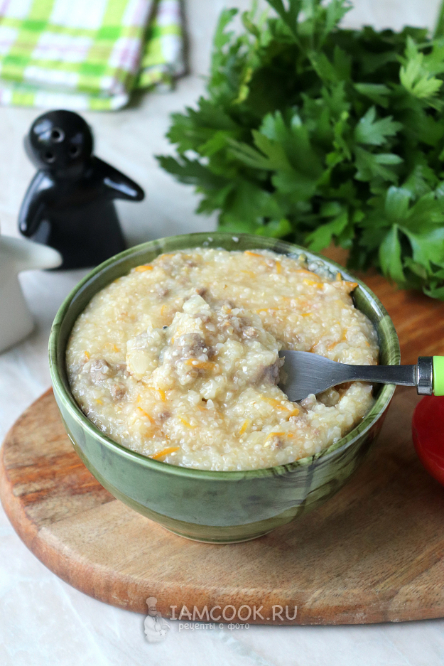 Пшеничная каша с фаршем получается очень вкусной и сытной. Она не требует никаких дополнений, разве что свежих овощей и зелени.