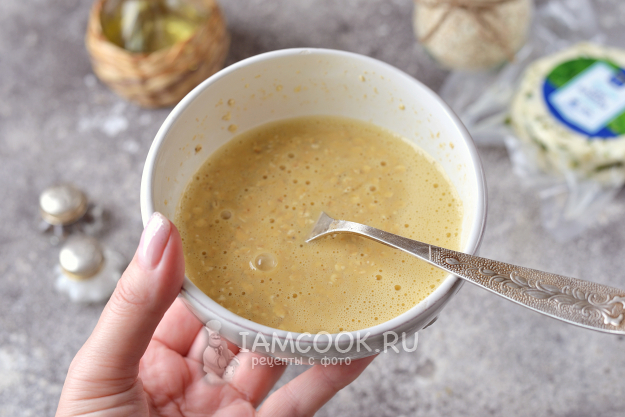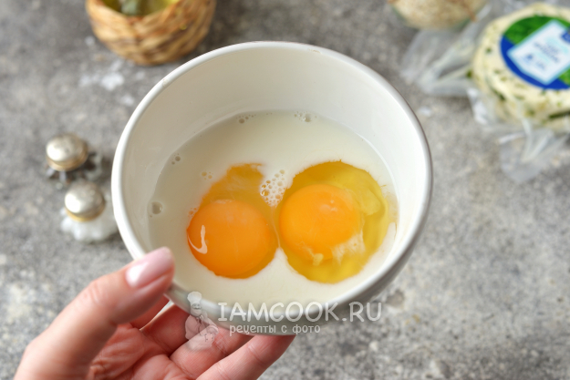 Первым делом нужно взбить два небольших яйца с молоком в глубокой мисочке.
