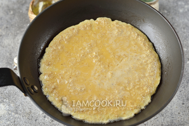Смажьте сковороду растительным маслом, вылейте тесто и жарьте минуты 2 на тихом огне.