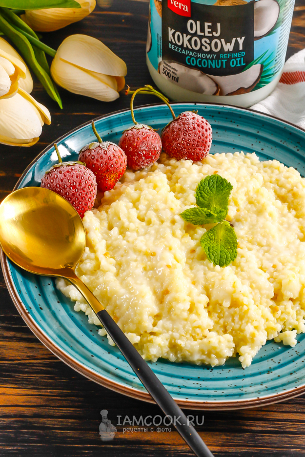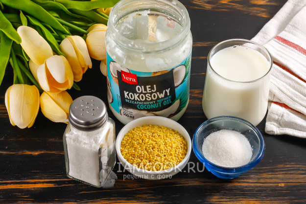 Подготовьте необходимые ингредиенты для создания сытной пшенной каши на кокосовом молоке.