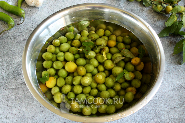 Для приготовления ткемали из зеленой алычи возьмите продукты по списку. Количество специй регулируйте по своему вкусу, Чрезмерную кислоту еще не совсем поспевших плодов легко уравновесить сахарным песком, солью, пряными приправами.