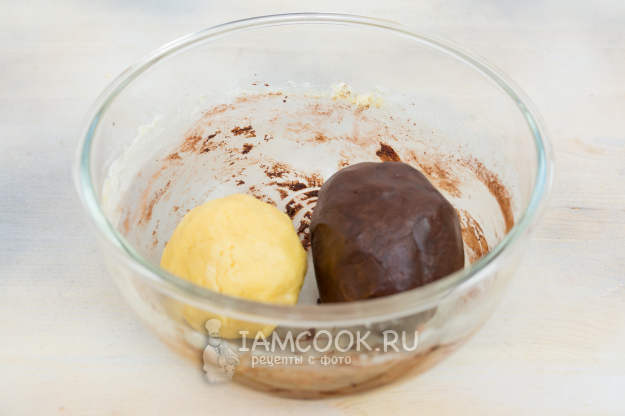 Темное тесто выложите на белое...