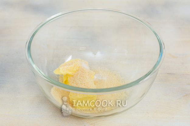 Сливочное масло соедините с солью, сахаром и ванилином.
