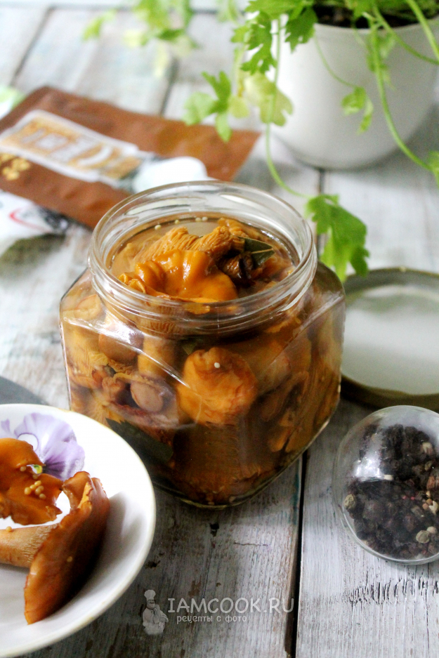Оставим грибы для остывания в маринаде, а потом разложим по сухим чистым баночкам. Маринада должно быть не меньше 30% от объема заготовки - плотно укладывать грибы не нужно. На поверхность можно влить 1-2 столовых ложки подсолнечного масла. Стерильно я грибы не закрываю, и не советую это делать дома. Ботулизм внешне не заметишь.