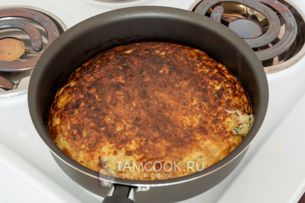 Жарьте запеканку с другой стороны также под крышкой и на маленьком огне ещё минут 15.