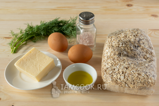 Для приготовления овсяноблина с сыром и зеленью подготовьте необходимые компоненты. Овсянку лучше брать быстрого приготовления, чтобы не пришлось её долго размачивать.