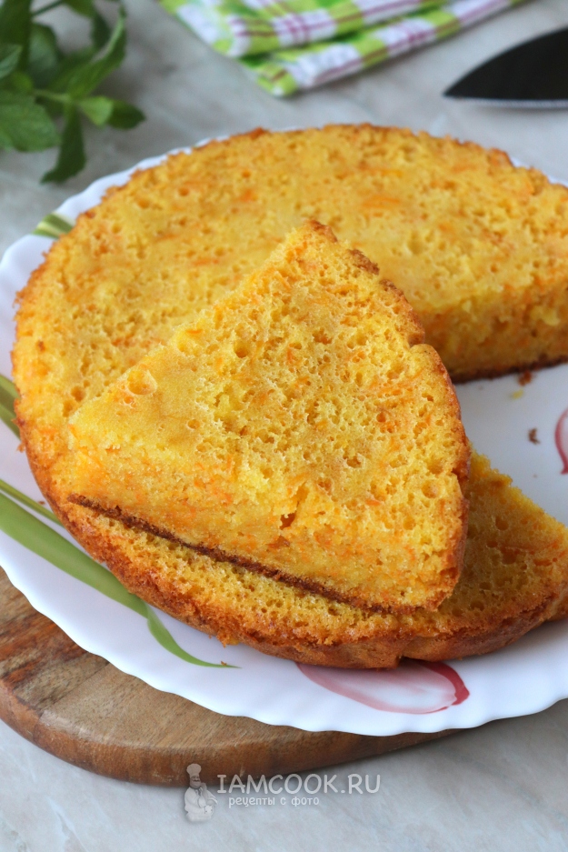 Морковный бисквит, приготовленный по данному рецепту, получается в меру сладким, сочным и очень вкусным. По желанию его можно дополнительно посыпать сахарной пудрой или покрыть глазурью.