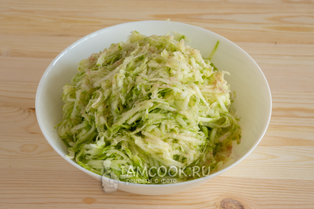 Натрите кабачки (можно и с кожурой, если молодые) на тёрке.