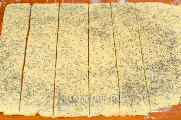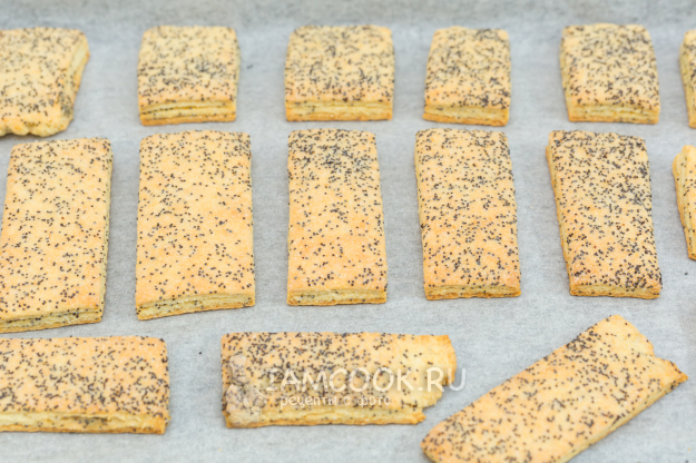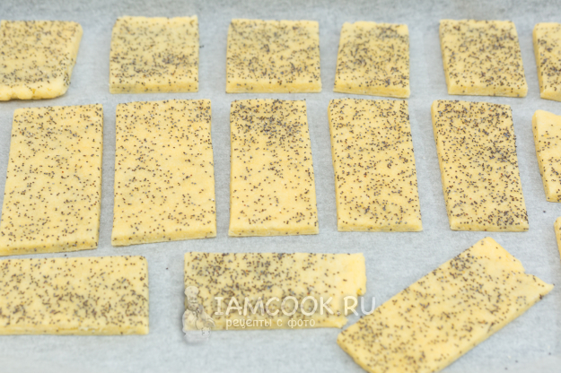 Выпекайте песочное печенье с маком в разогретой до 180 градусов духовке 12-15 минут.