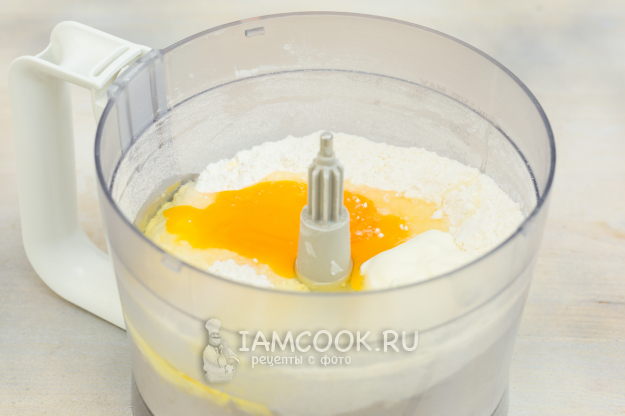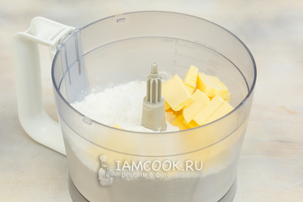 Сливочное масло перетрите с мукой, солью, разрыхлителем, сахаром и ванилином.